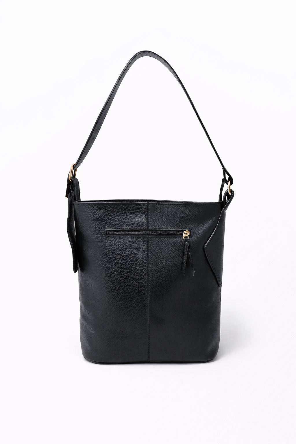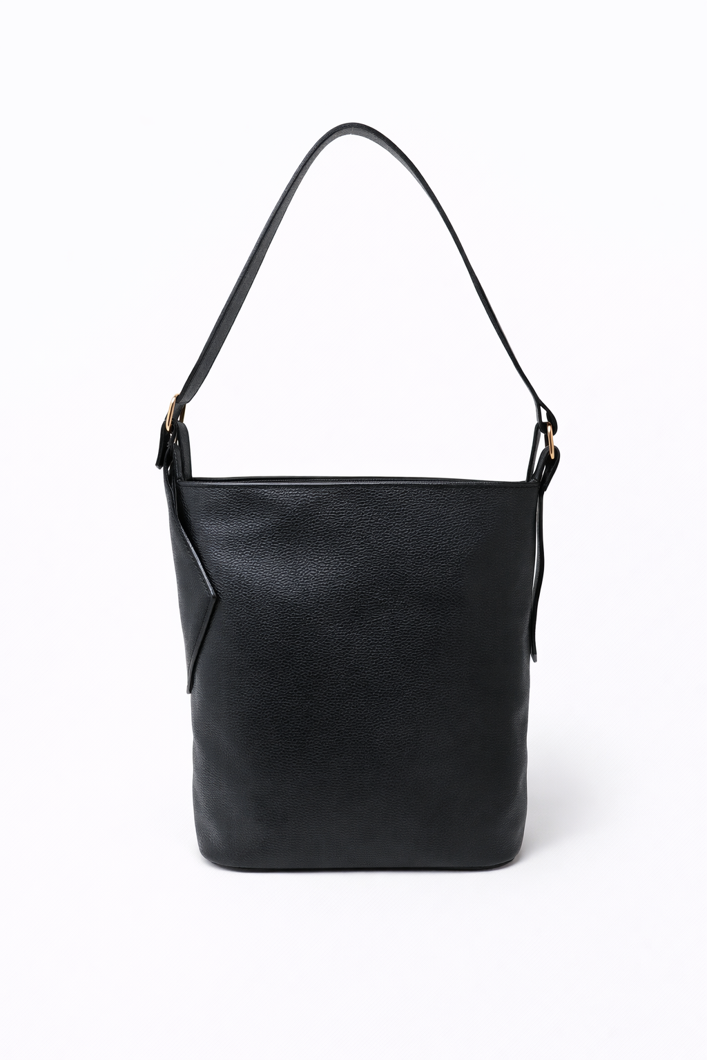 Ref. 26107 Bolso Dama en Cuero Plano Color Negro – Manija Plana Ancha con Aro y Hebilla Grande