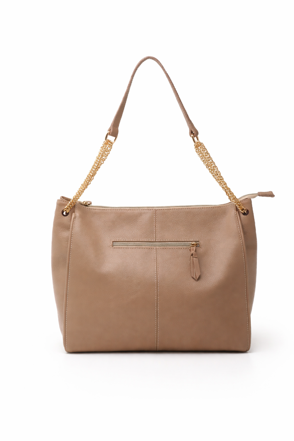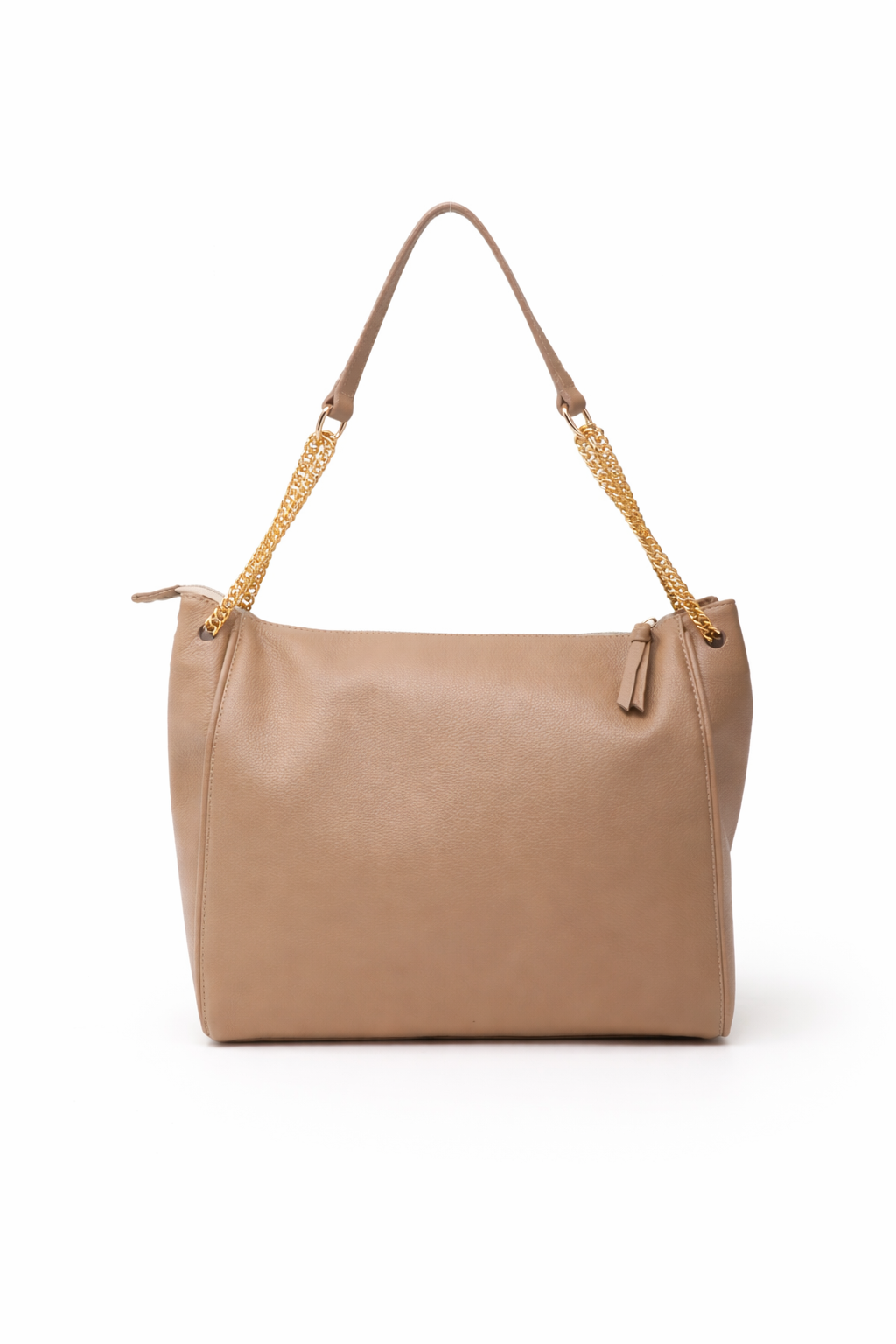 Ref. 26113 Bolso Dama en Cuero Plano Color Cappuchino – Cadena en Manija