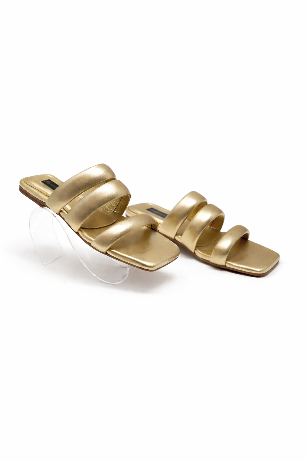 Ref. S116MAREA Calzado Sandalia Plana en cuero tipo confección tres tiras color dorado